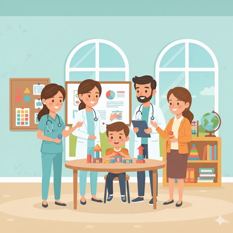A collaborative model working closely with local allied health professionals (e.g., therapists and psychologists) to ensure holistic care for complex needs.